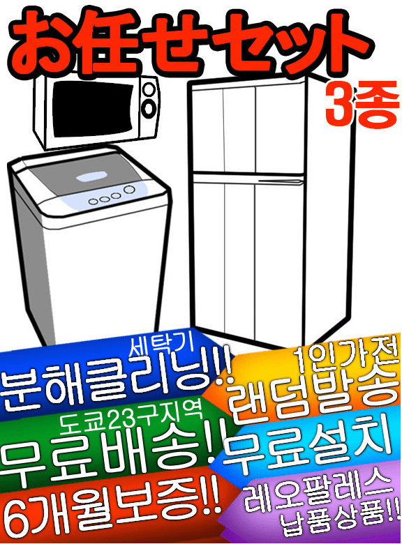 그럴때 아래와 같은 중고제품을 전문으로 파는 리사이클 업체를 통해서 가전세트 3~5만엔 정도 하는 가전가구를