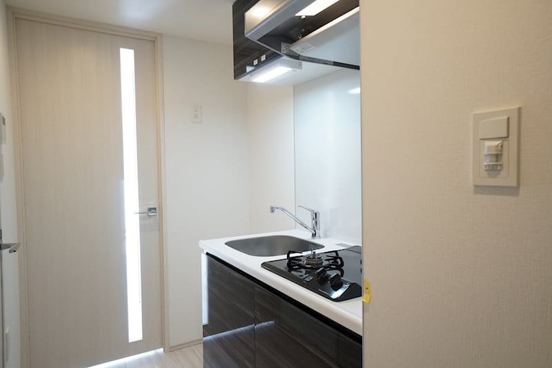 2구 스토브, 가스 키친, 가스 스토브, 가스 스토브 설치 완료, 시스템 키친, 내진 래치 걸이 선반